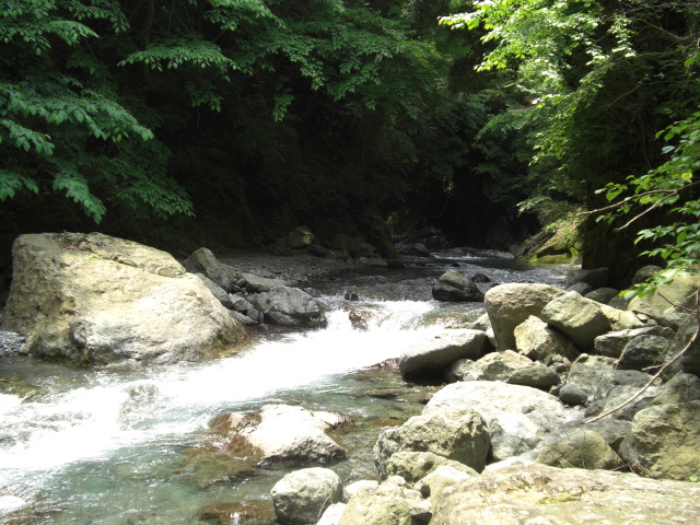 さらに上流いくとかなり流れも急で自然全開。落石も沢山転がってたな。