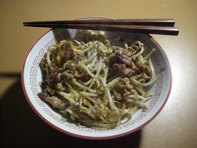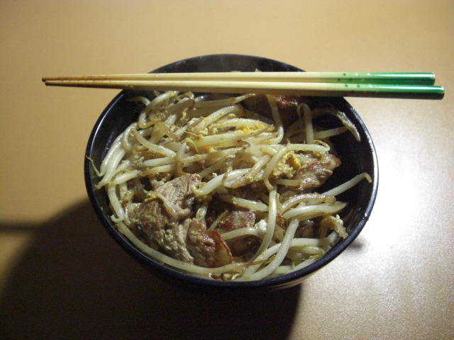 今日も豚肉炒め。肉、一番小さいサイズの買ってるんですけど、5食分位になるんです。