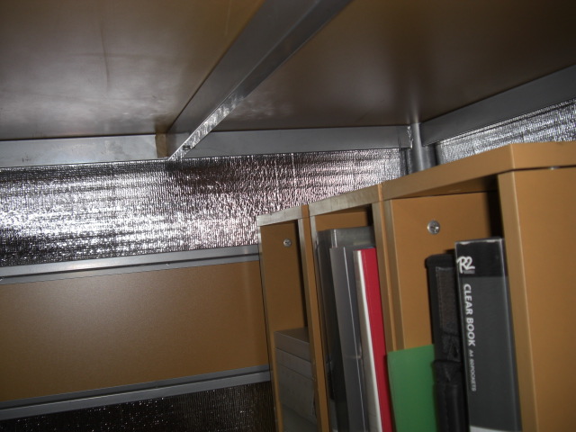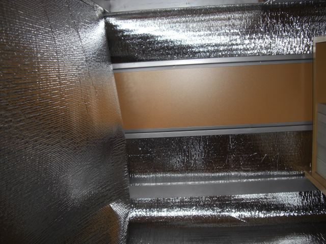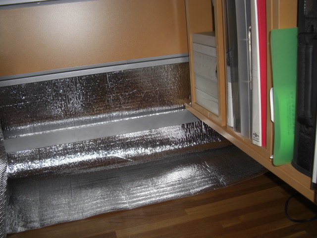 ついでに机の下部をアルミの断熱材で覆いました。ハロゲンヒーターは机の下に入れてますから